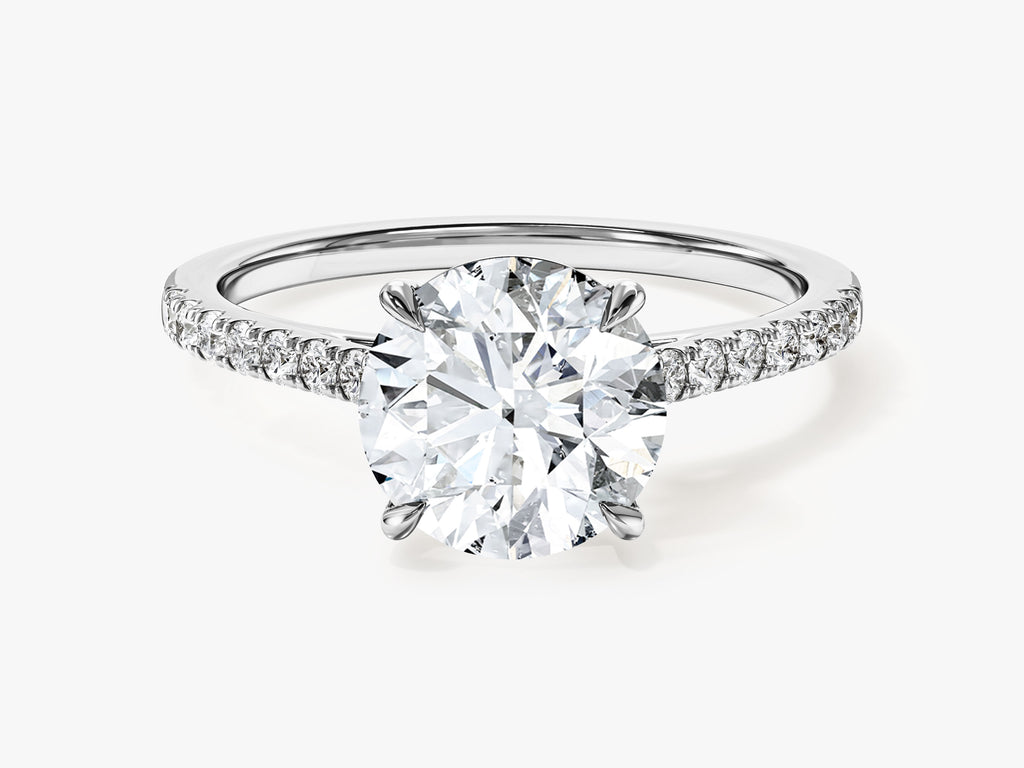 Verlobungsring mit rundem Moissanit im Kathedralenschliff und Pavé-gefassten Seitensteinen (2,00 ct)