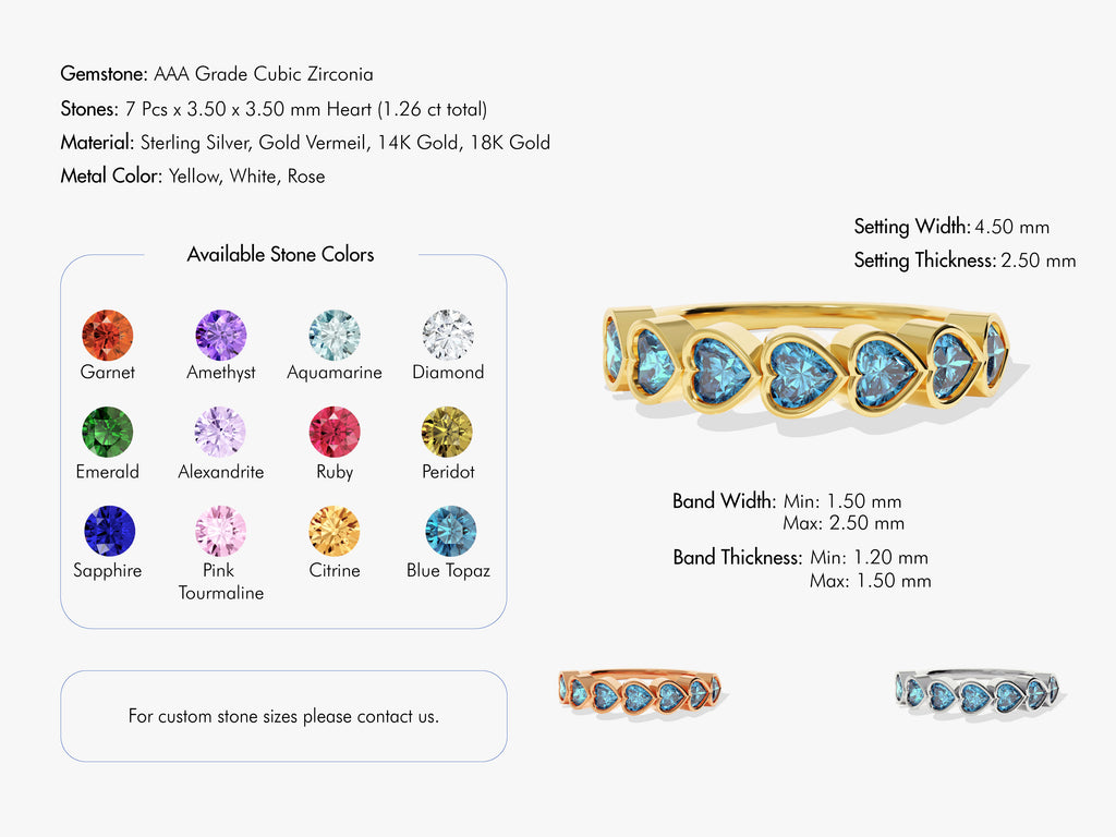 Der Halb-Ewigkeitsring mit herzförmigen Geburtssteinen ist ein zeitloses Symbol für Liebe und Individualität. Dieser Ring ist in Sterlingsilber, Gold-Vermeil oder Massivgold erhältlich und besticht durch eine Reihe funkelnder, herzförmiger Geburtssteine, die in eine elegante Halb-Ewigkeits-Fassung eingefasst sind. Ein bedeutungsvolles Schmuckstück, das besondere Momente feiert und sich perfekt zum Kombinieren mit anderen Ringen oder zum Solo-Tragen eignet.