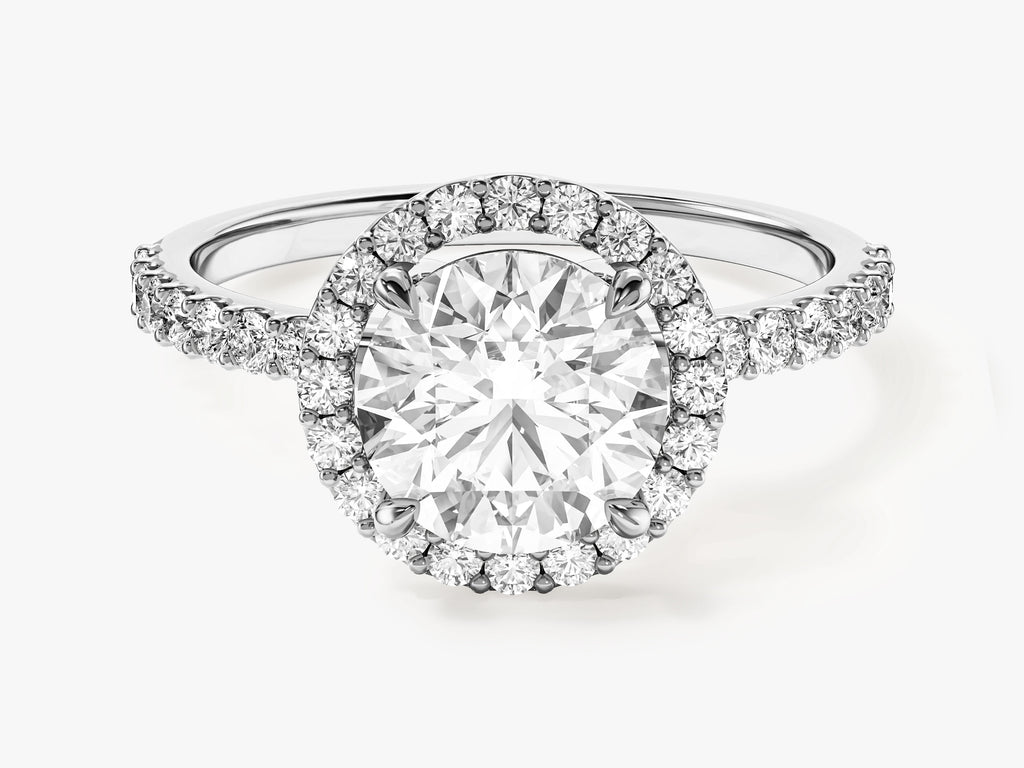 Verlobungsring mit rundem, im Labor gezüchtetem Diamanten im Halo-Design (1,50 ct)