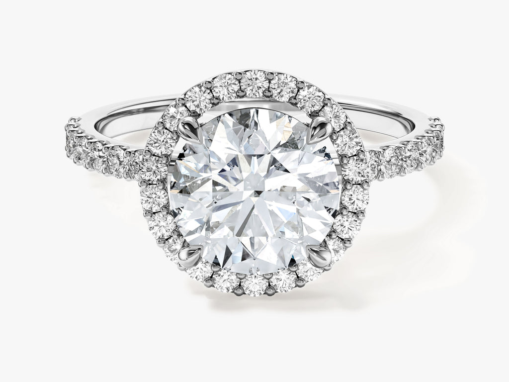Verlobungsring mit rundem, im Labor gezüchtetem Diamanten im Halo-Design (2,00 ct)