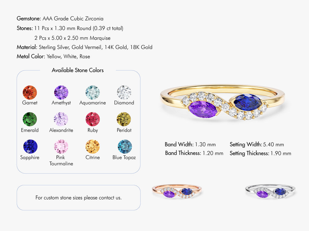 Geburtsstein-Ring mit zwei Marquise-Schliffen