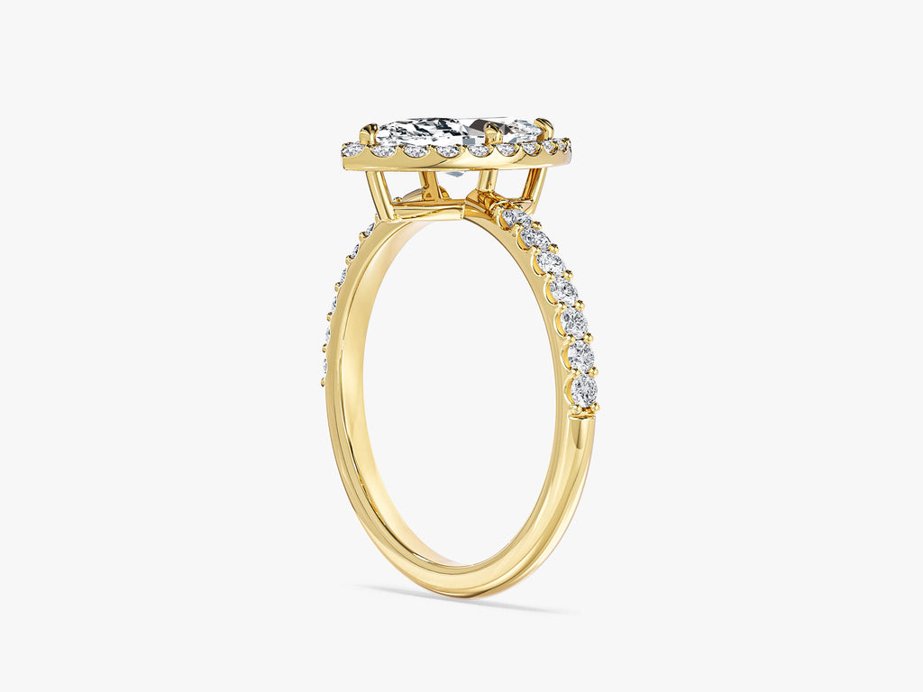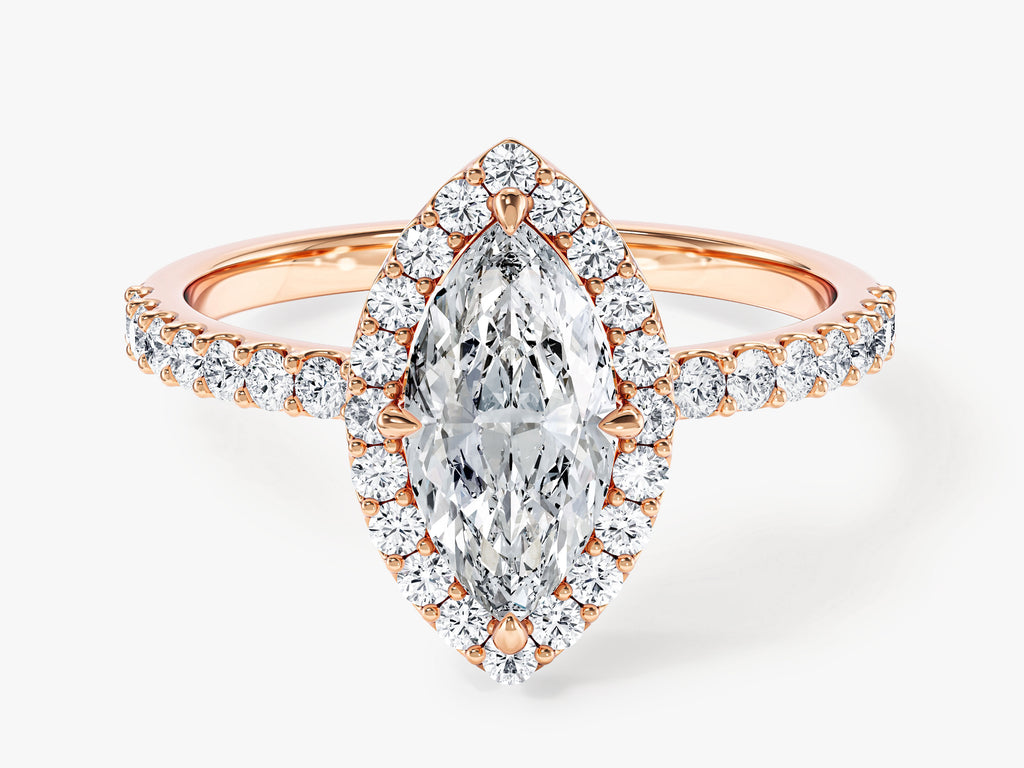 Moissanit Verlobungsring im Marquiseschliff Halo mit Pave-Seitensteinen (1.00 CT)