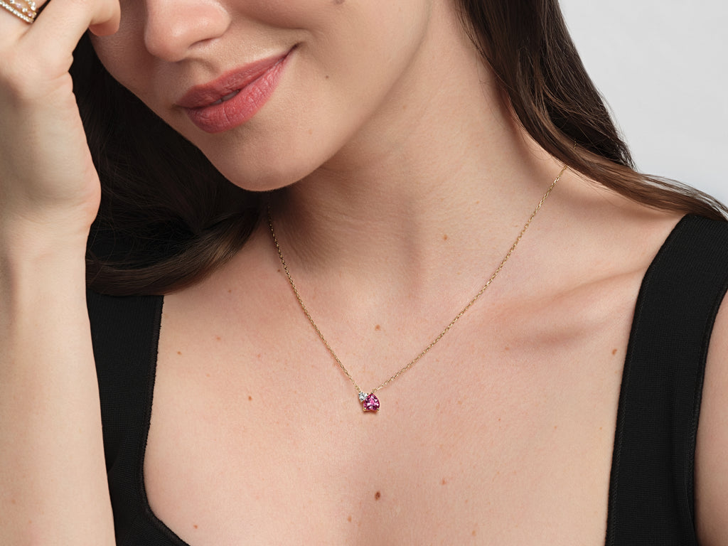 Wear your love on your heart. This delicate necklace is a modern take on the classic "toi et moi" design which symbolizes two souls united. Customize it with your birthstones or those of someone special to create a meaningful and unique piece.