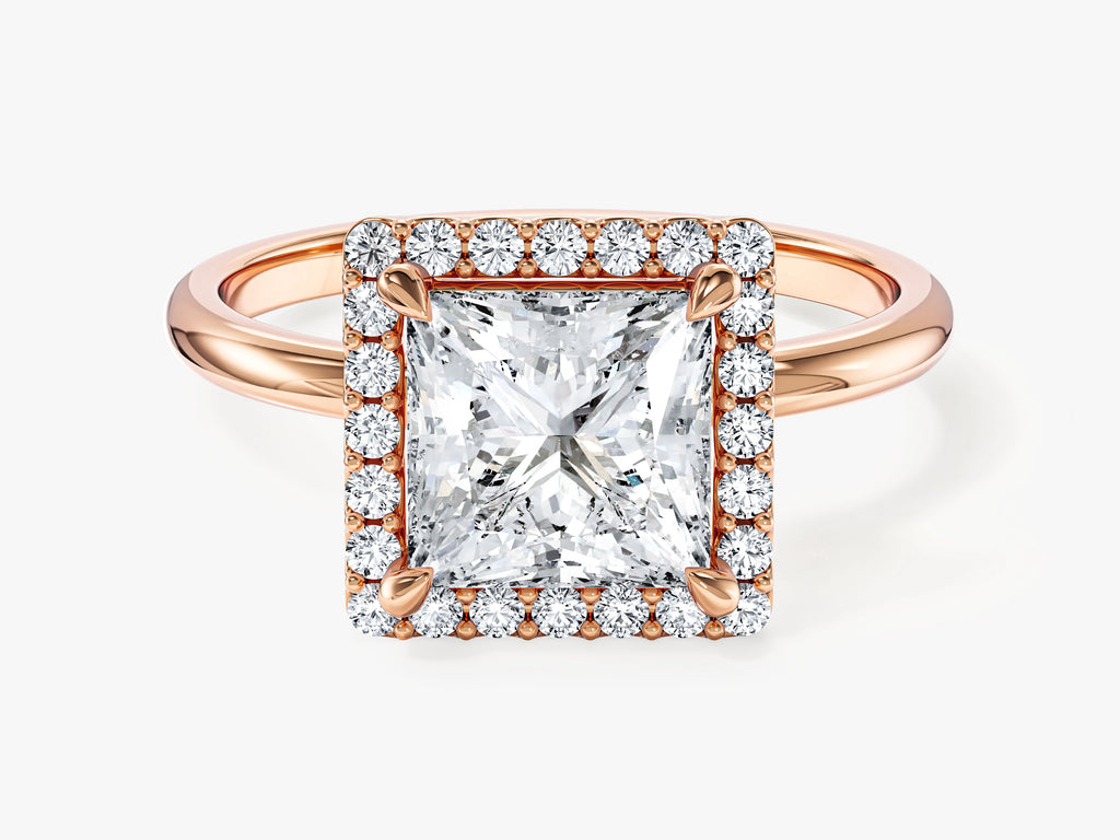 Moissanit Verlobungsring im Prinzessschliff Halo (2.00 CT)