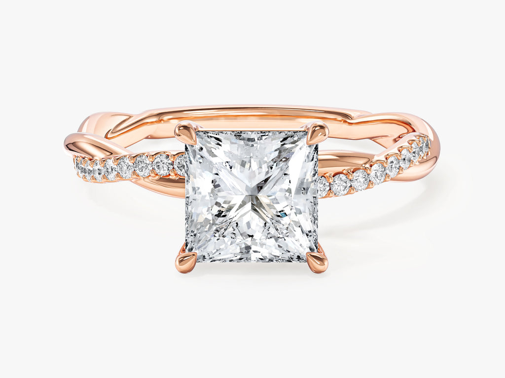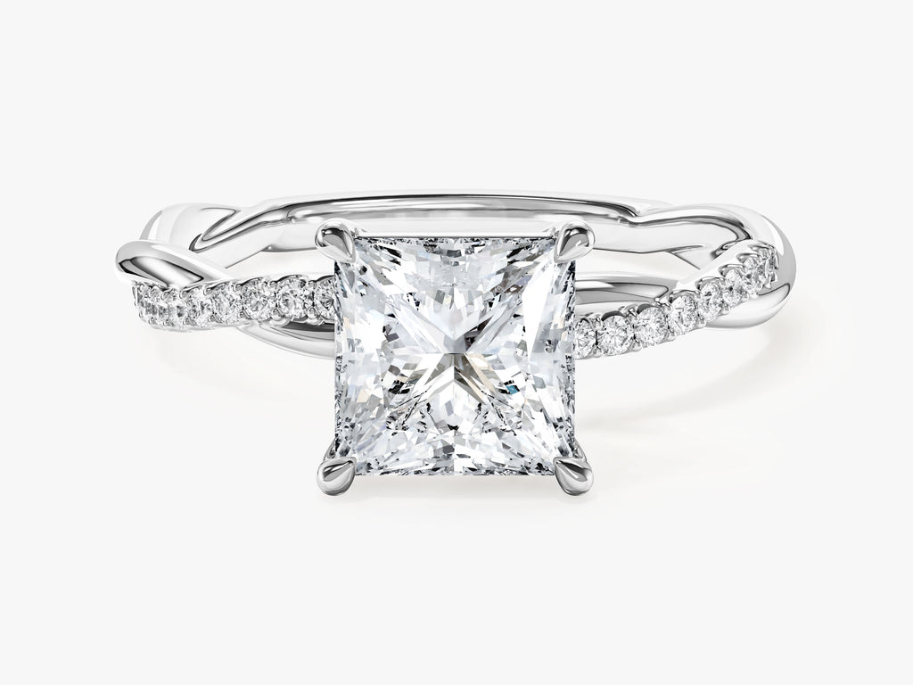 Twist Moissanit Verlobungsring im Prinzessschliff mit Seitensteinen (1.50 CT)