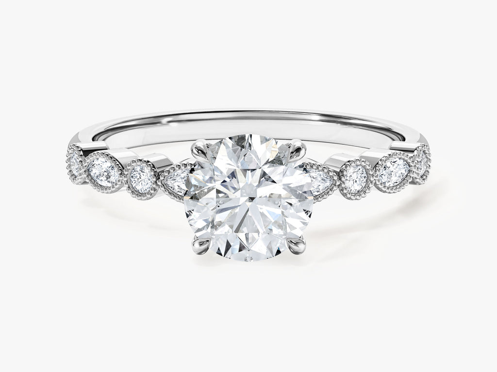 Milgrain Marquise Side Stone Moissanite Engagement Ring (1.00 CT)