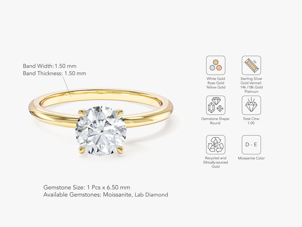 4-Prong Solitaire Round Cut Moissanite Engagement Ring (1.00 CT)