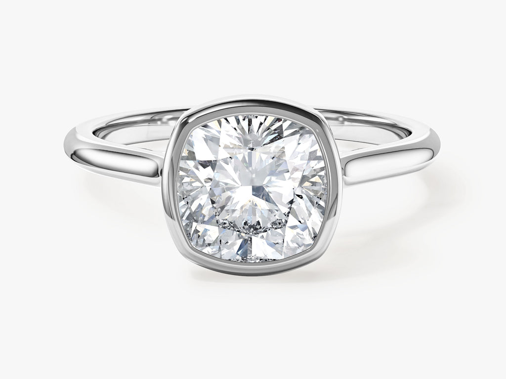 Bezel Cushion Moissanite Engagement Ring (2.00 CT)