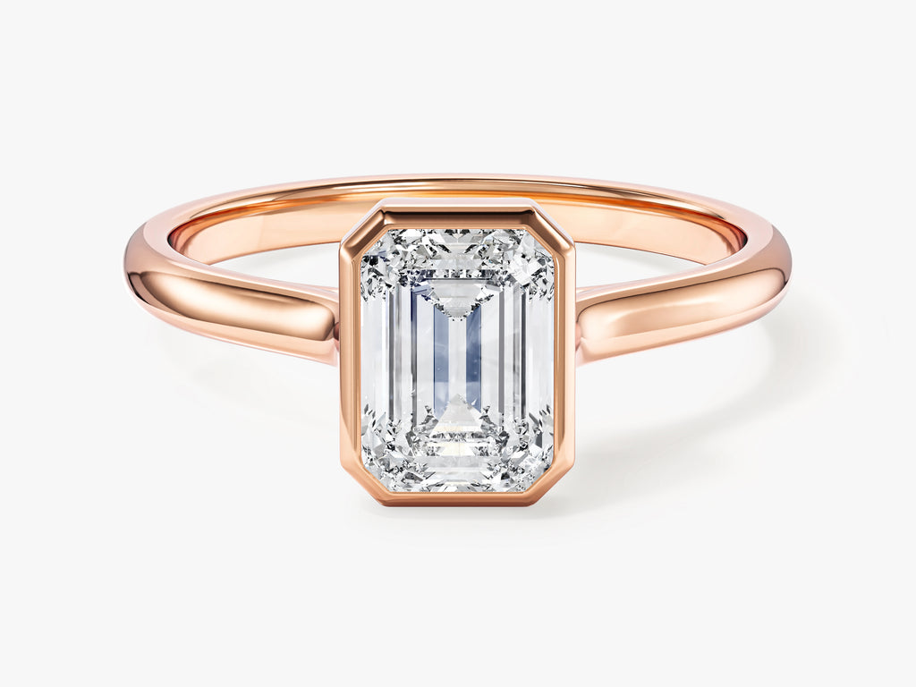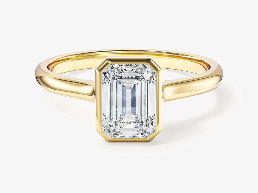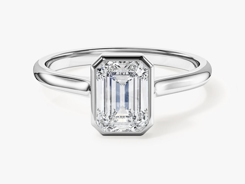 Bezel Emerald Moissanite Engagement Ring (1.00 CT)
