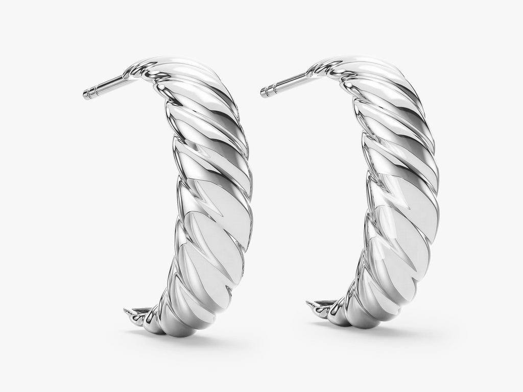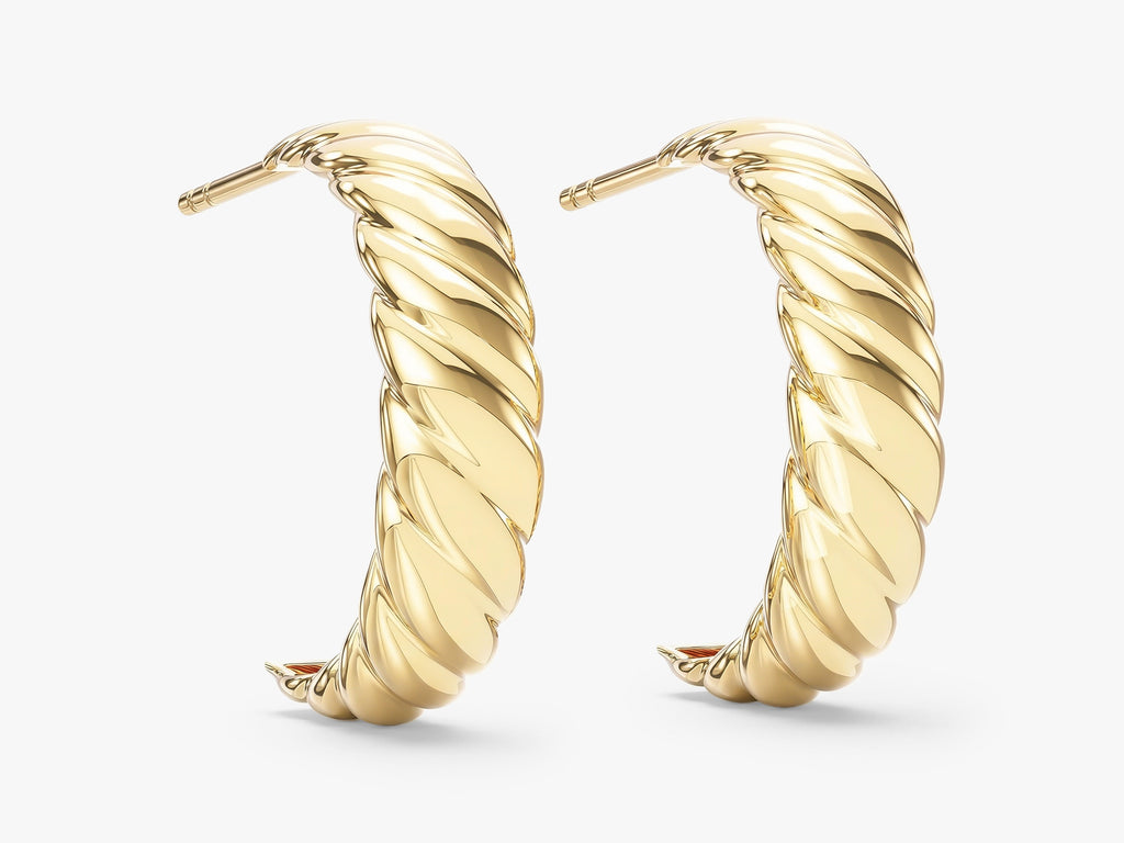 You will have a hard time taking off these chic, and chunky earrings. These lightweight earrings are meant to be worn all day long, from work to the dance floor. Uniquely designed with a twisted silhouette, these hoops are chic and bold, while adding a subtle textural interest to any outfit you wear them with. Perfect for everyday wear or your special occasions. Lightweight so you can wear them all day without discomfort. Classic hoops with unique design make them fit seamlessly into any outfit--whether it's an elegant cocktail dress or your favorite skinny jeans. Made from solid gold, gold vermeil or sterling silver and polished to a high-shine finish, ensuring years of wear!