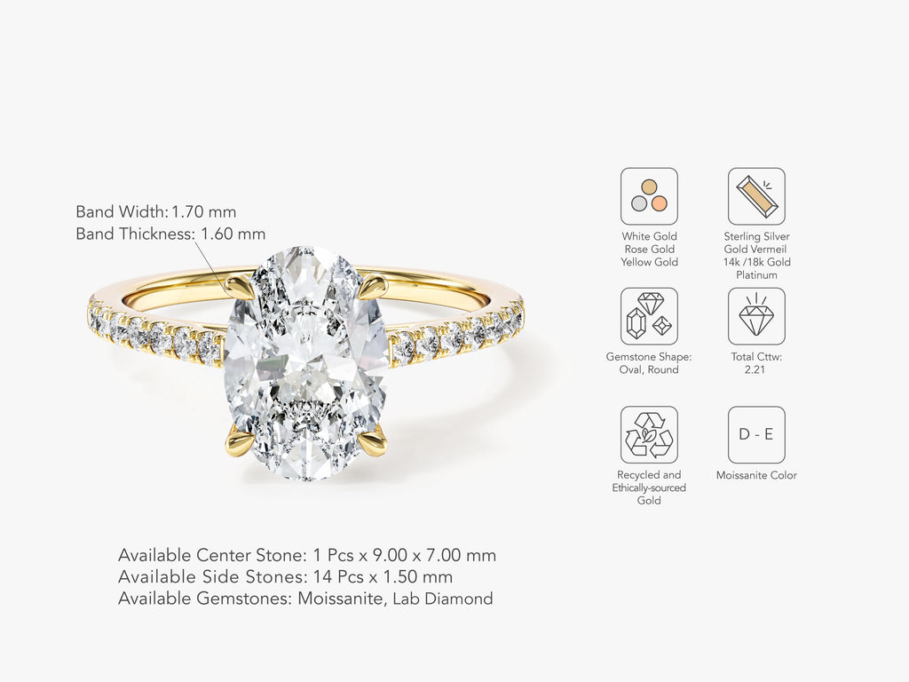 Cathedral Oval Cut Moissanite Engagement Ring with Pave Set Side Stones (2.00 CT)