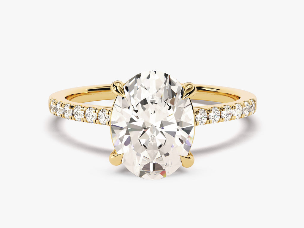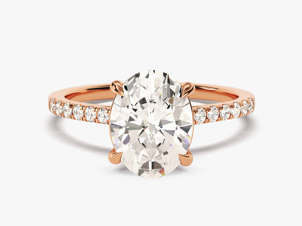 Cathedral Oval Cut Moissanite Engagement Ring with Pave Set Side Stones (3.00 CT)