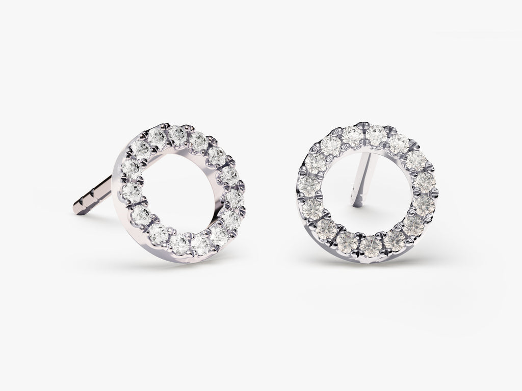 These circle stud earrings are hand-crafted from solid gold, gold vermeil or sterling silver. The sparkly stones are ideal cut and set in a lovely circle design. This delicate, feminine earring has been created to last a lifetime. A timeless piece for your jewelry collection.