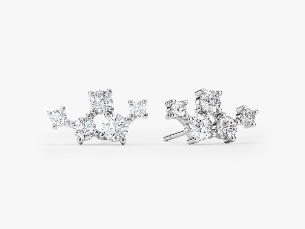 FEATURES• Made to Order• Metal Options: Sterling Silver, Gold Vermeil, 14k Solid Gold, 18k Solid Gold• Color Options: Yellow, White, Rose • Width: 16.00 mm• Gemstone: Diamond or Moissanite• Cut: Round• Color - Clarity: G Color - SI1 Clarity• Number of Stones and Size: 2 x 4.00 mm, 4 x 3.40 mm, 4 x 2.40 mm • Total CTTW: 1.30 ct tw (for both earrings)