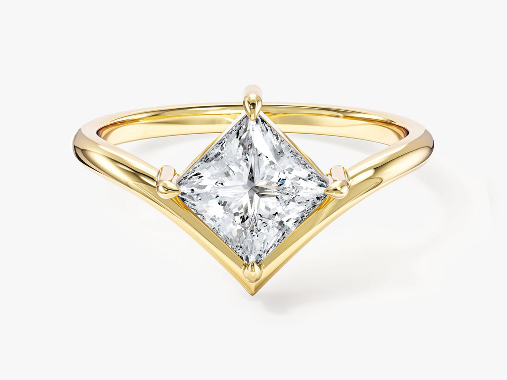 This exquisite handcrafted ring features a stunning 1.00 ct princess lab-grown diamond set in a luxurious solid gold curved band. An elegant and timeless choice, this ring will surely become a treasured heirloom for generations to come.