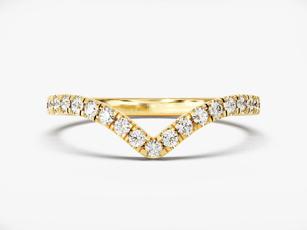 This elegant Curved Diamond Wedding Band is crafted in 14k gold, featuring 19 sparkling round diamonds. Its gentle curve allows for a perfect fit alongside an engagement ring, creating a timeless, sophisticated look. The delicate design, combined with the brilliant diamonds, offers both elegance and versatility, making it an ideal choice for celebrating your special day.