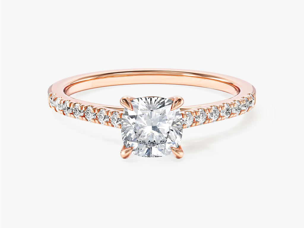 Cushion Cut Lab Grown Diamond Engagement Ring with Pave Set Side Stones (1.00 CT)