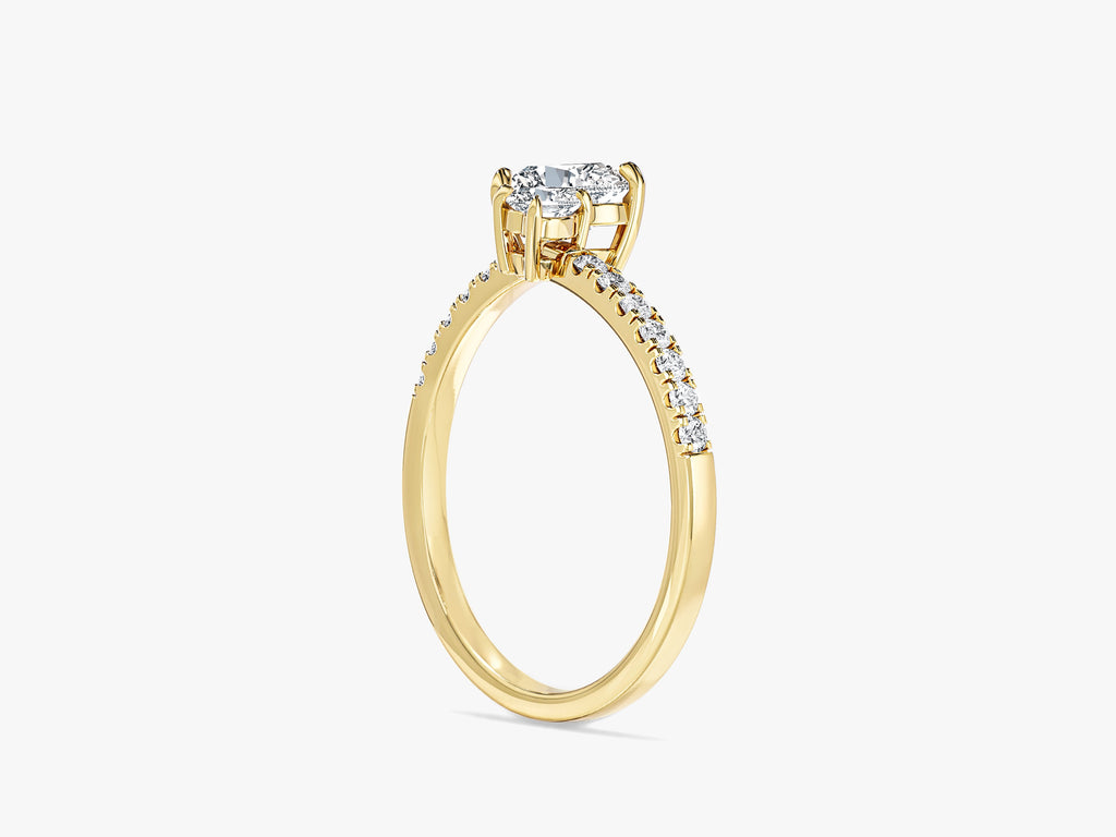 The design is enhanced by a pave moissanite band that adds a touch of brilliance and sophistication. Handcrafted by skilled artisans, this ring showcases exceptional quality and intricate detailing.
