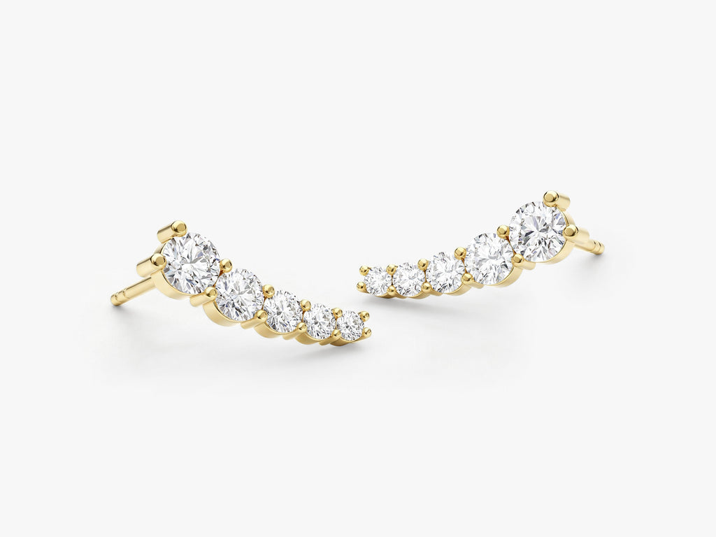 This stunning piece features a graceful ascent of diamond - moissanite stones, each one set slightly larger as it climbs up your ear, creating a beautiful gradient effect.