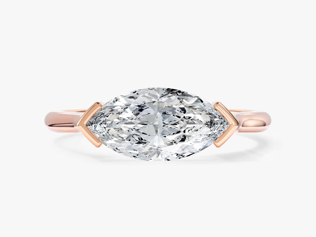 Sleek and contemporary, this design reimagines a classic shape with a modern twist. Set horizontally across the band, the marquise center creates a refined silhouette that feels fresh yet timeless. With its clean lines and understated elegance, it’s the perfect choice for those who appreciate modern minimalism with a distinctive edge.