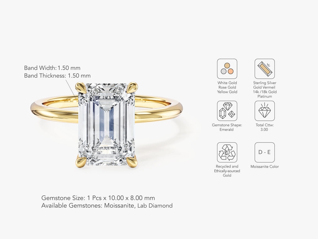 Emerald Cut Solitaire Moissanite Engagement Ring (3.00 CT)