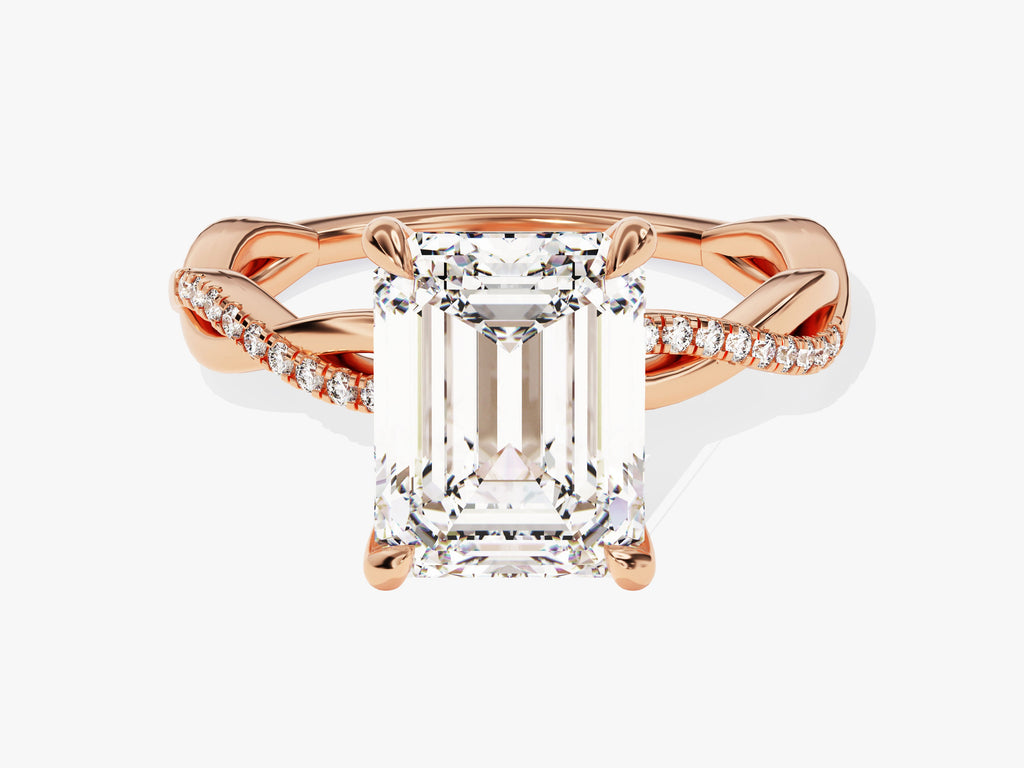 Emerald Twisted Diamond Engagement Ring with Pave Set Side Stones (3.00 CT)