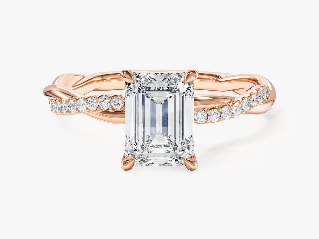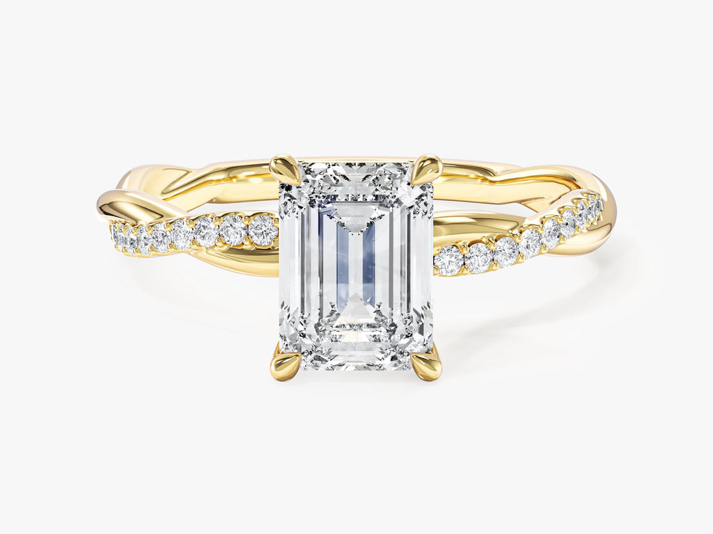 Emerald Twisted Lab Grown Diamond Engagement Ring with Pave Set Side Stones (1.50 CT)