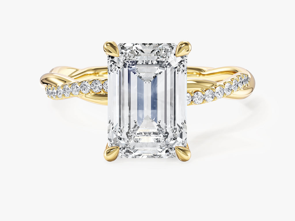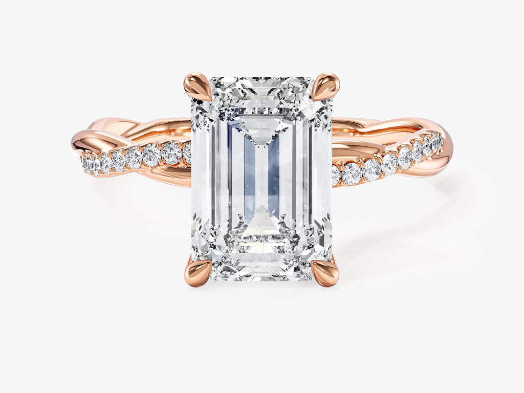 Emerald Twisted Lab Grown Diamond Engagement Ring with Pave Set Side Stones (3.00 CT)