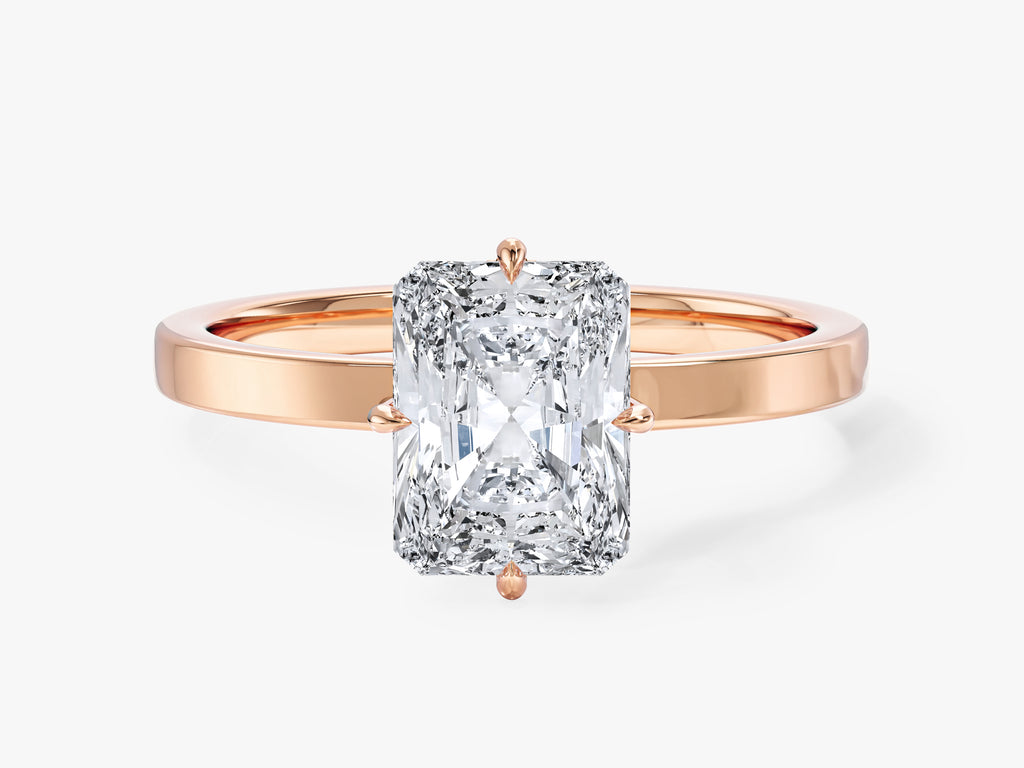 Flat Band Radiant Cut Natural Diamond Engagement Ring