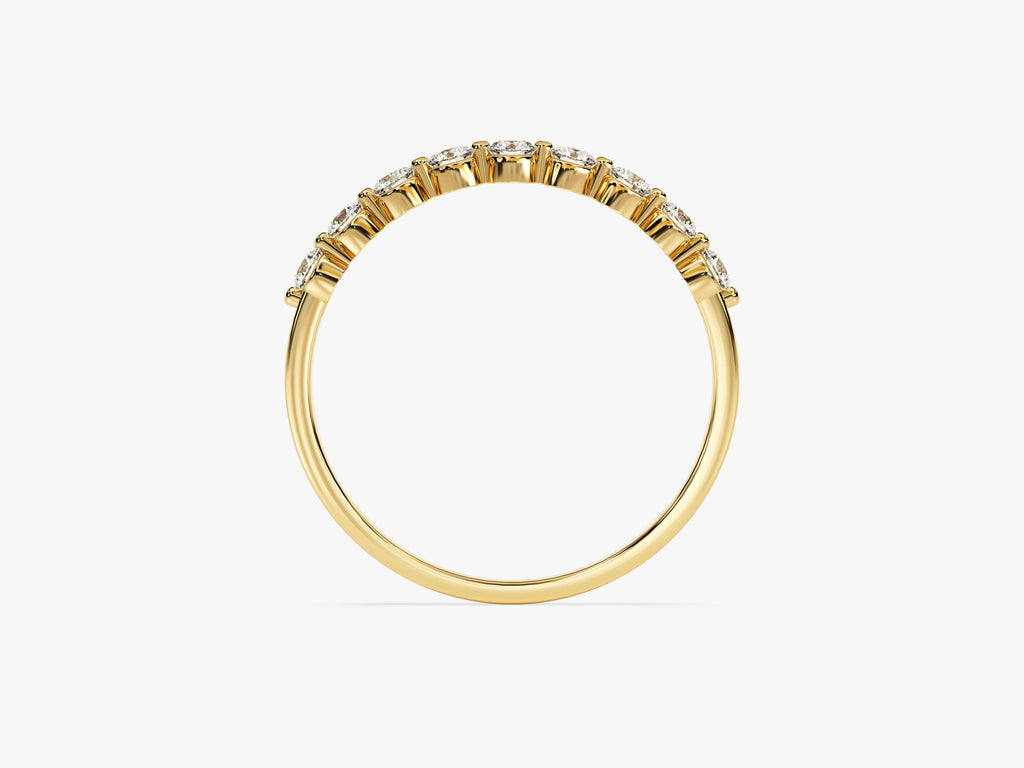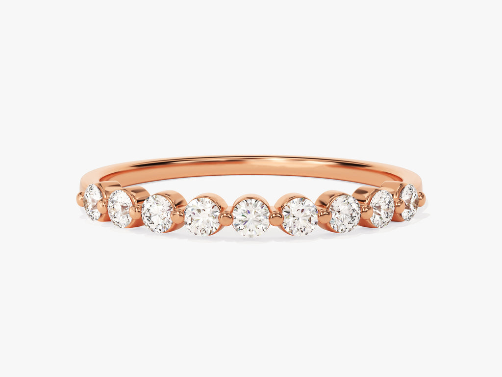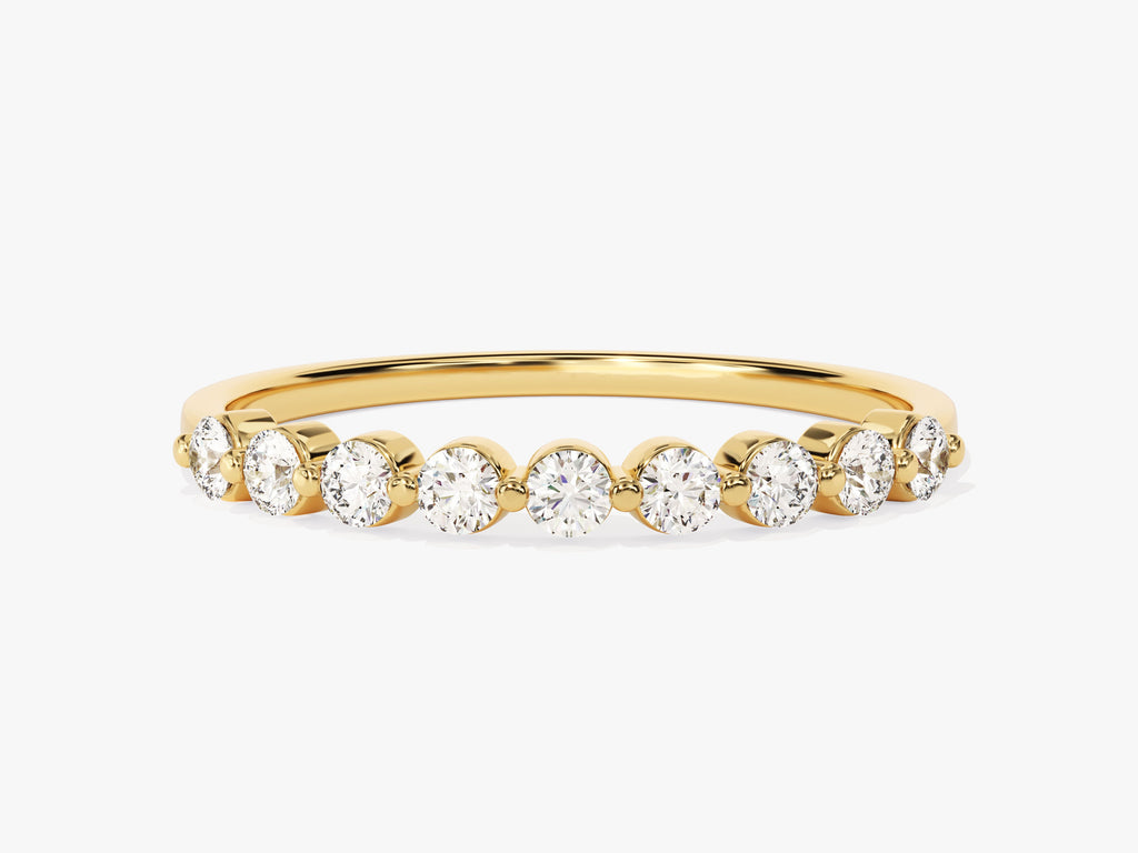 FEATURES• Made to Order• Gold Kt: 10k Gold, 14k Gold, 18k Gold• Gold Color: Rose Gold, Yellow Gold, White Gold• Available Ring Sizes: US 2-14 (For custom sizes please contact us!)• Width: 1.5 mm• Thickness: 1.2 mm• Diamond Cut: Round• Diamond Color - Clarity: G Color - SI1 Clarity• Number of Stones and Size: 9 x 2.40 mm• Total CTTW: 0.45 ct tw