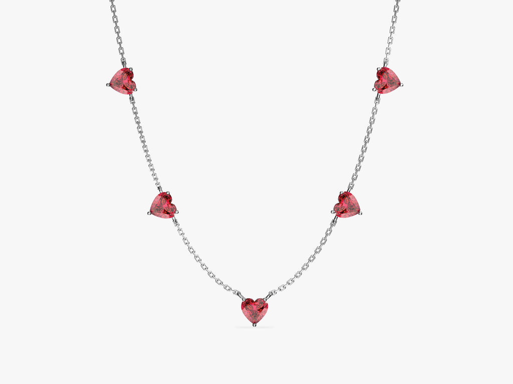 Heart Birthstone Station Necklace