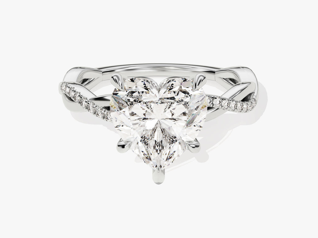 Heart Twisted Moissanite Engagement Ring with Pave Set Side Stones (3.00 CT)