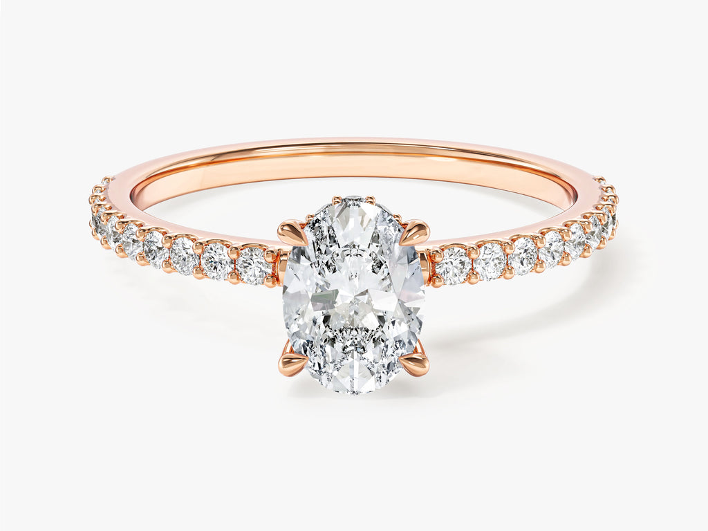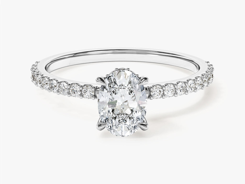 Hidden Halo Oval Lab Grown Diamond Engagement Ring with Sidestones (1.00 CT)