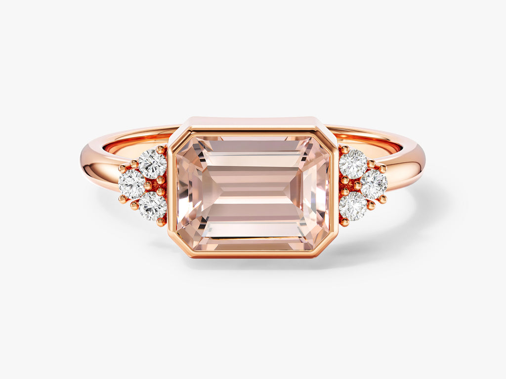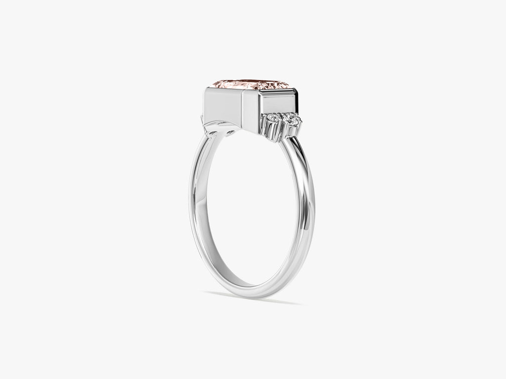 Horizontal Emerald Cut Gemstone Engagement Ring