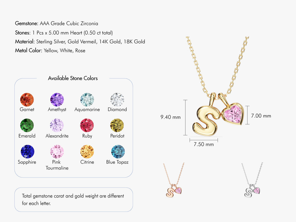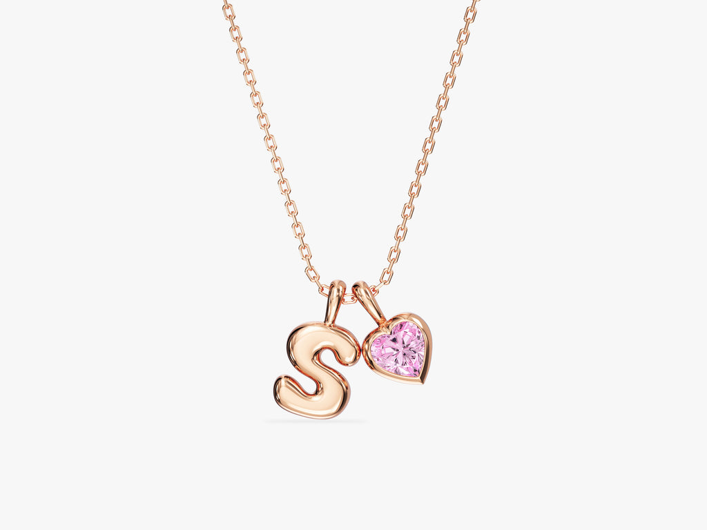 Initial Letter Heart Birthstone Charm Necklace