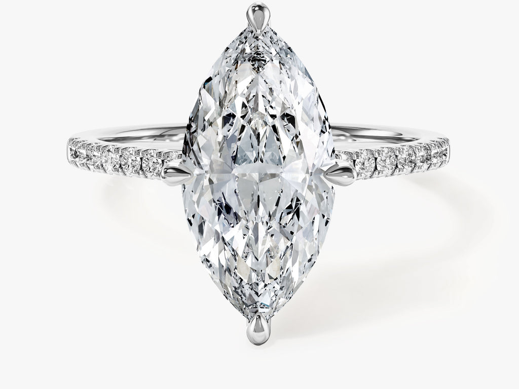 Marquise Cut Lab Grown Diamond Engagement Ring with Pave Set Side Stones (3.00 CT)