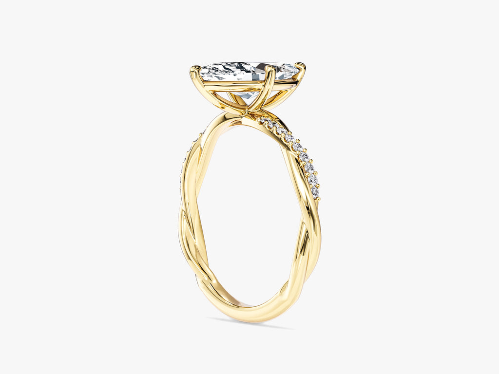 Elevate your love story with the Marquise Twisted Lab Grown Diamond Engagement Ring featuring Pave Set Side Stones, a harmonious fusion of timeless elegance and contemporary refinement. At its core, a dazzling marquise-cut lab-grown diamond takes center stage, designed to captivate with its remarkable clarity and distinctive allure. The unique twisted band design adds a modern touch to the ring, symbolizing the intertwining paths of your love.