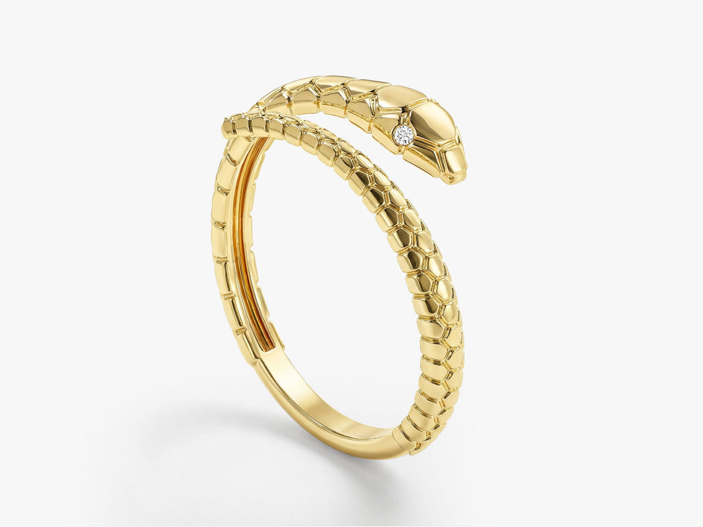The Minimalist Snake Ring is a love at first bite. Crafted from gold vermeil, sterling silver or solid gold, featuring 2 round-cut genuine natural diamonds - moissanite, this symbol of eternity and rebirth will elevate your look from ordinary to extraordinary.