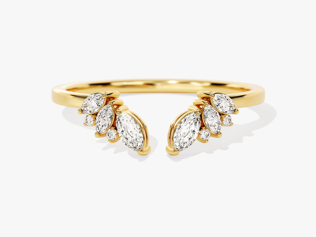 This charming open band offers tiny diamonds in a luminous dance around your finger. Its open design allows for versatility so you can pair it with other rings and create your own unique stack. Whether you're celebrating your "I do's" or marking another milestone, this beauty is the perfect way to say it with diamonds.