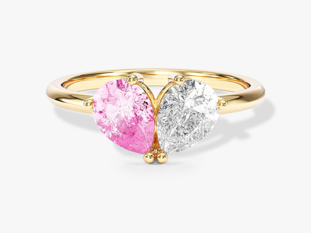 Two pear-cut birthstones meet in a graceful Toi et Moi embrace, symbolizing two souls beautifully intertwined. Designed to celebrate love, balance, and connection, this ring tells a story that’s uniquely yours.