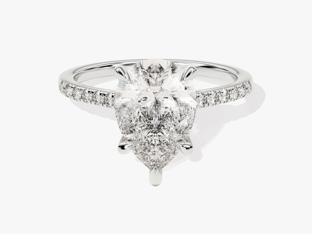 Pear Cut Diamond Engagement Ring with Pave Set Side Stones (3.00 CT)