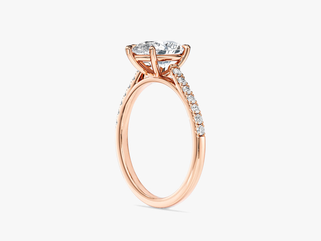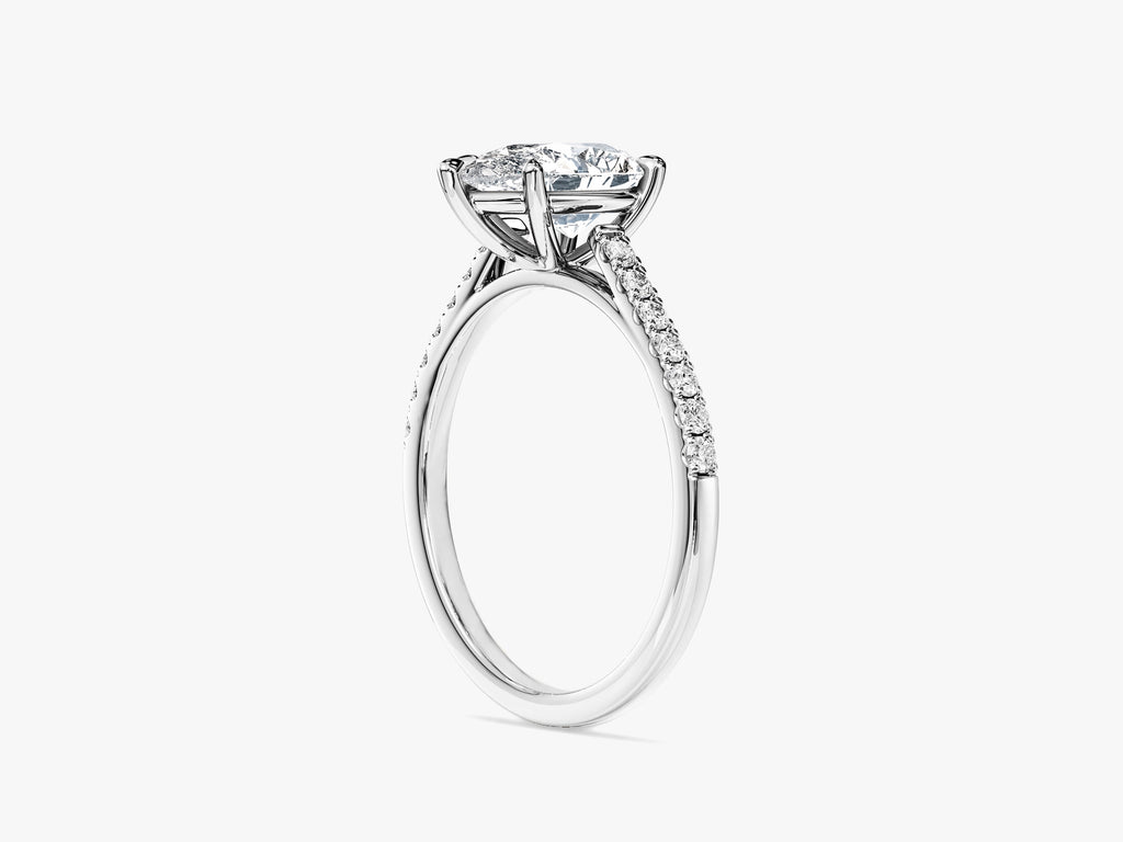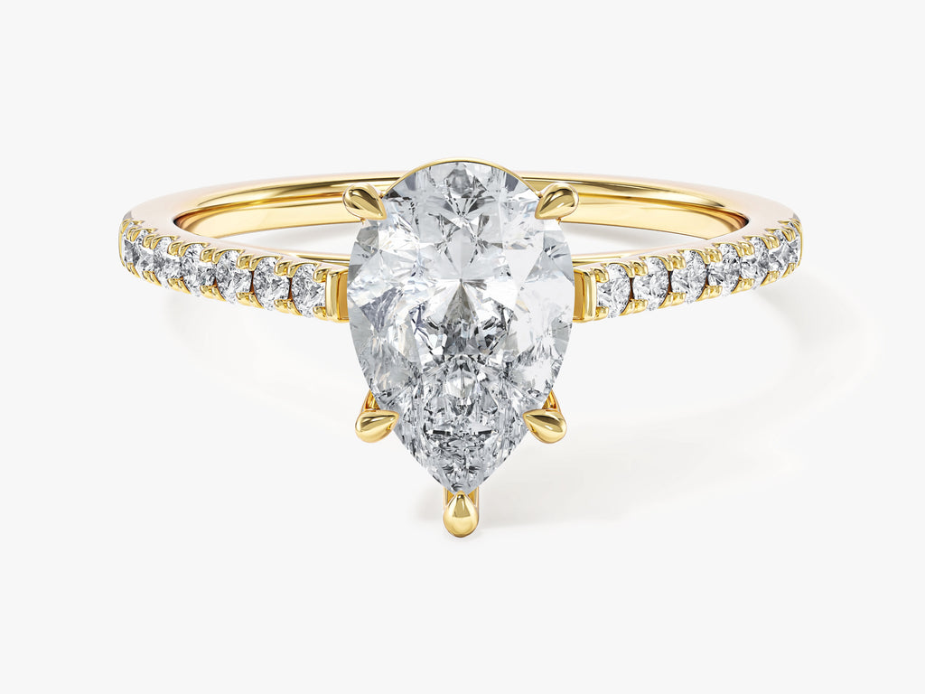 Elevate your love story with the Pear Cut Lab Grown Diamond Engagement Ring featuring Pave Set Side Stones, a harmonious fusion of timeless elegance and contemporary refinement. At its core, a dazzling pear-cut lab-grown diamond takes center stage, designed to captivate with its remarkable clarity and distinctive allure.