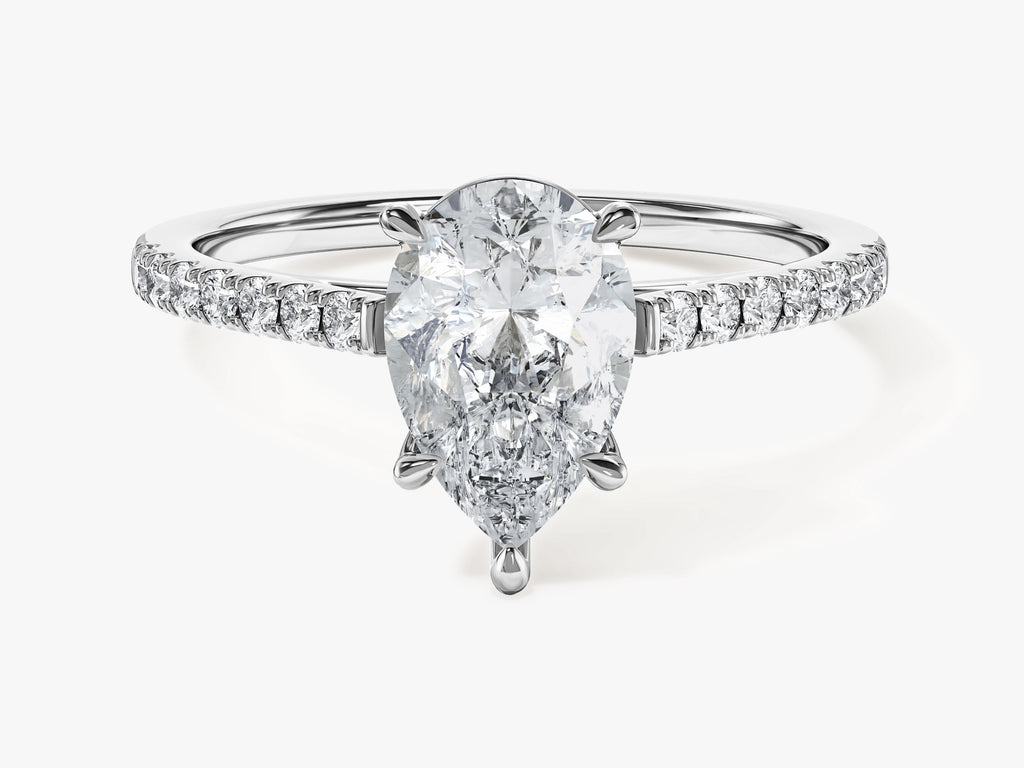 Pear Cut Lab Grown Diamond Engagement Ring with Pave Set Side Stones (1.50 CT)