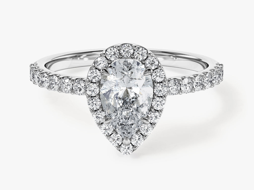 Pear Halo Moissanite Engagement Ring with Pave Set Side Stones (1.00 CT)