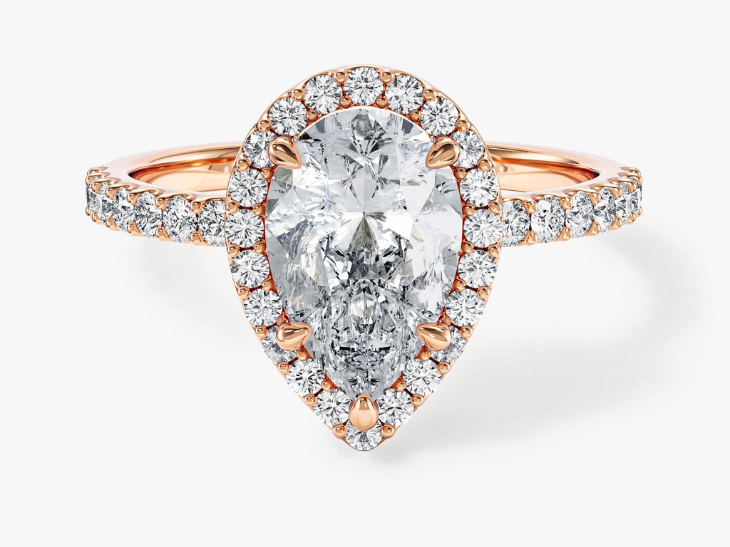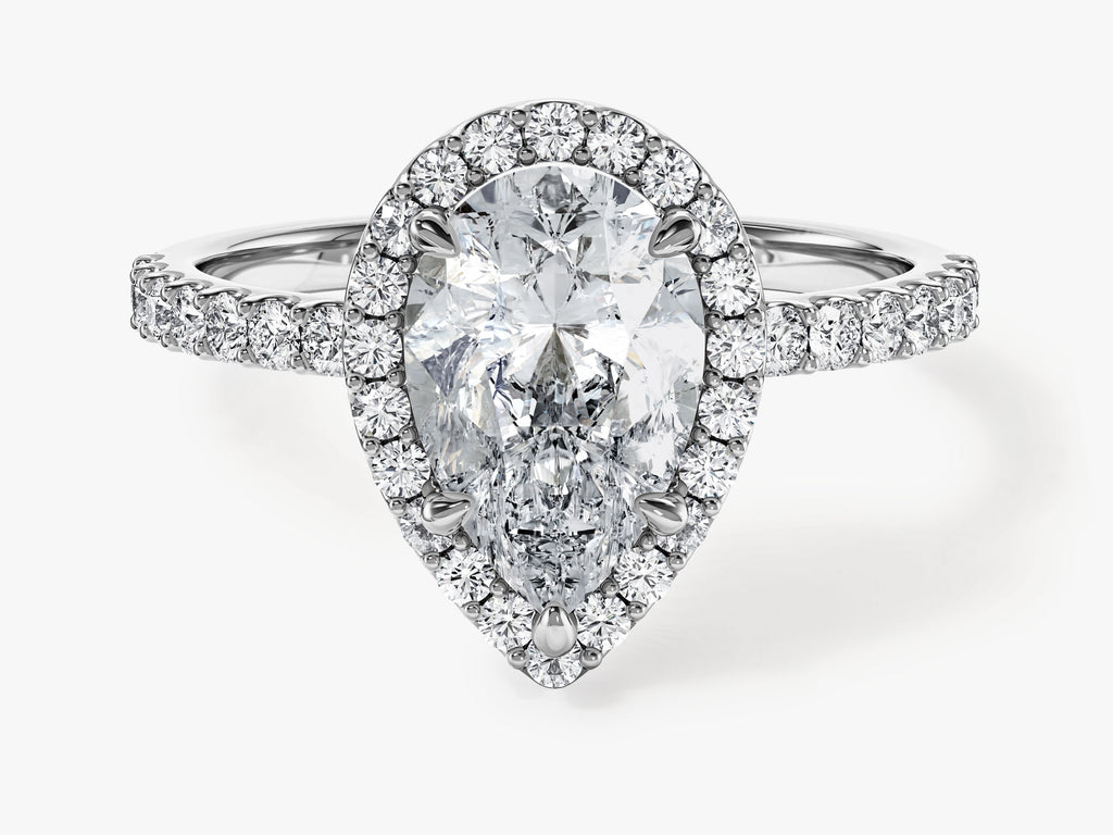 Pear Halo Moissanite Engagement Ring with Pave Set Side Stones (2.00 CT)