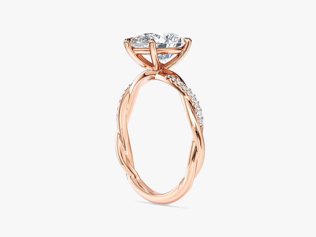 Make a statement of love and sustainability with our Pear Twisted Lab Grown Diamond Engagement Ring. The pear-shaped lab-grown diamond is a symbol of your unique love story, while the twisted band represents your intertwined destinies. Delicate pave-set side stones enhance the ring's beauty, offering a touch of glamour and sophistication.