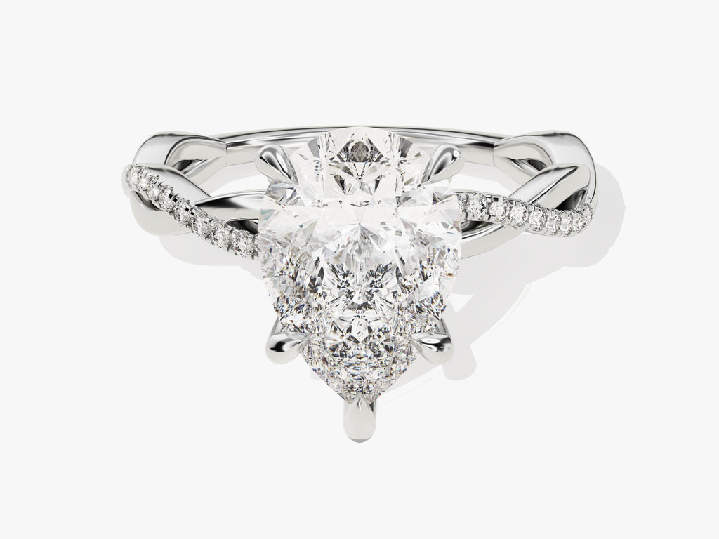 Pear Twisted Lab Grown Diamond Engagement Ring with Pave Set Side Stones (3.00 CT)