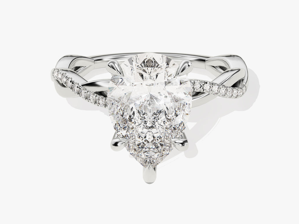Pear Twisted Moissanite Engagement Ring with Pave Set Side Stones (3.00 CT)