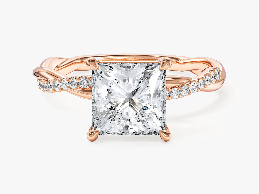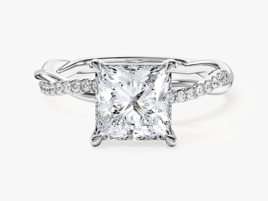 Princess Twisted Lab Grown Diamond Engagement Ring with Pave Set Side Stones (2.00 CT)