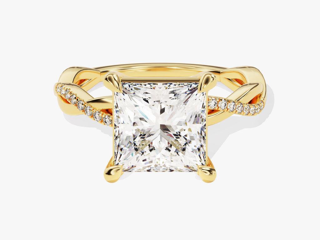 Princess Twisted Lab Grown Diamond Engagement Ring with Pave Set Side Stones (3.00 CT)